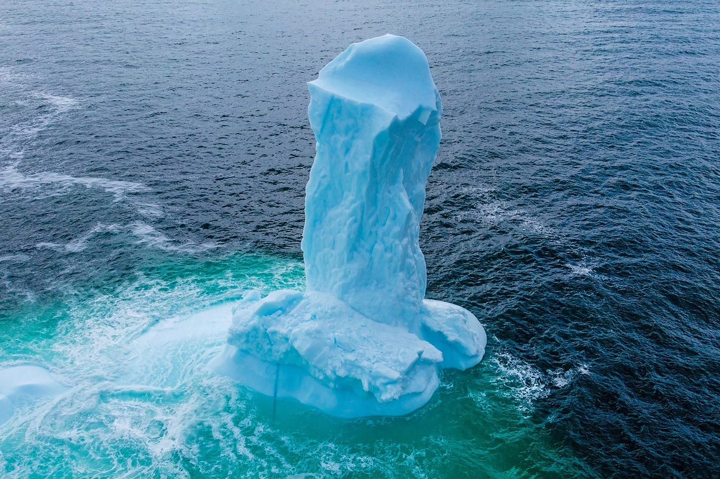 The suggestive 'berg consists of a column with a domed head protruding up from two oval rafts of ice. Photographer Ken Pretty captured a shot of the ice formation by drone near the town of Harbour Grace, which sits along — the puns keep adding up — Conception Bay.