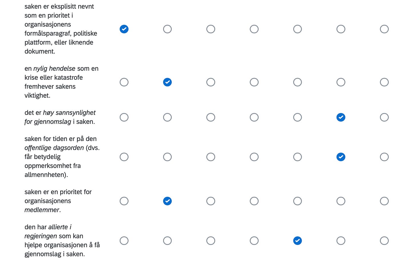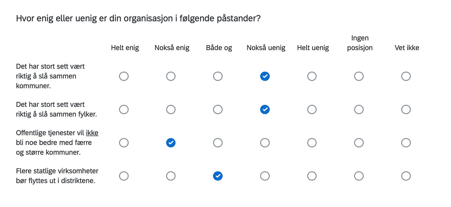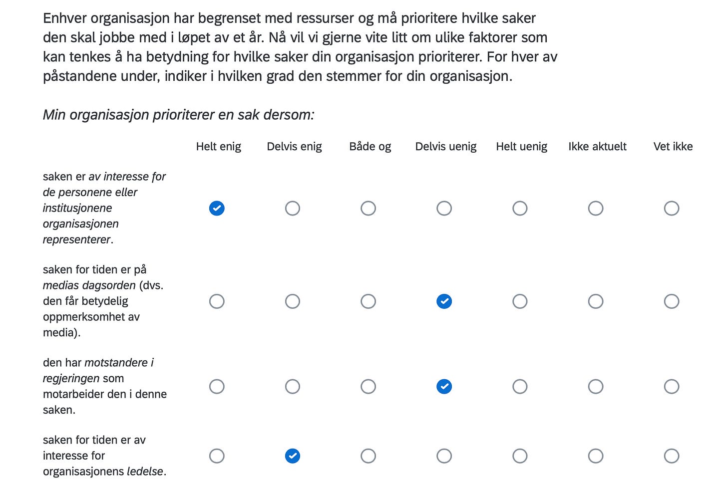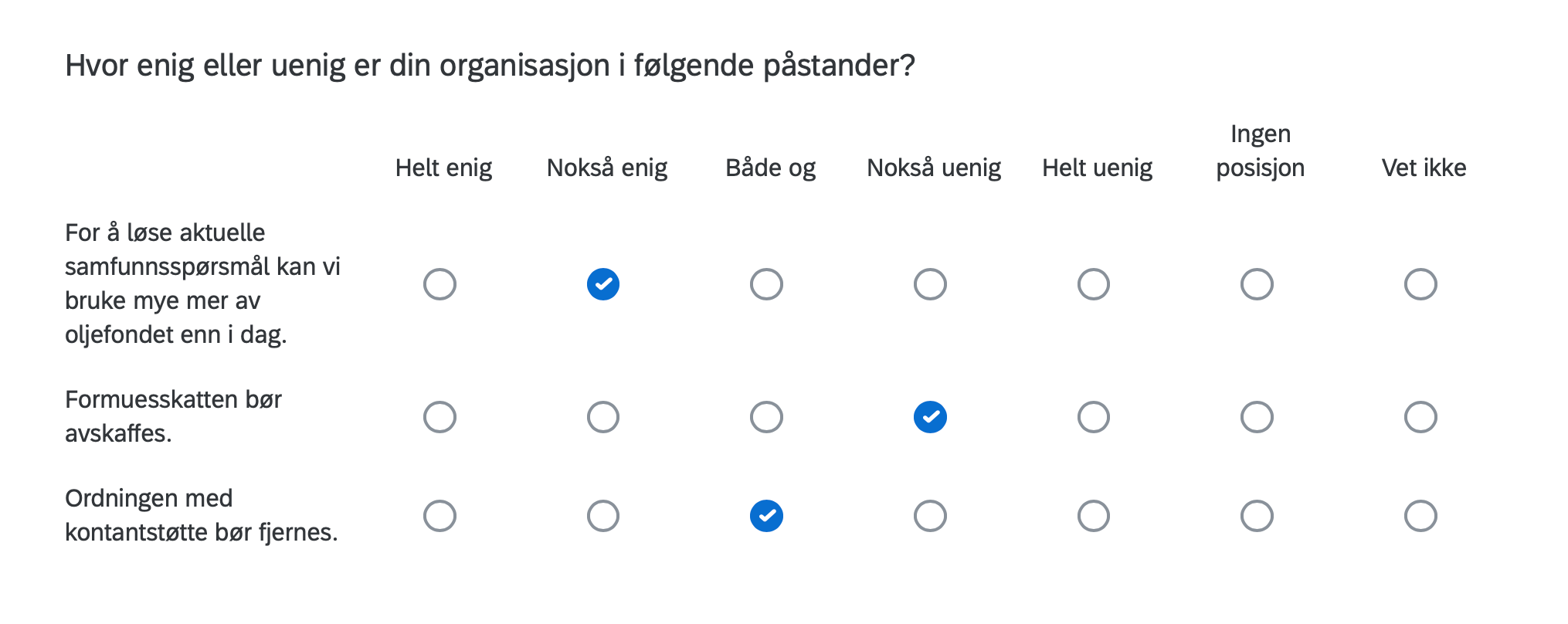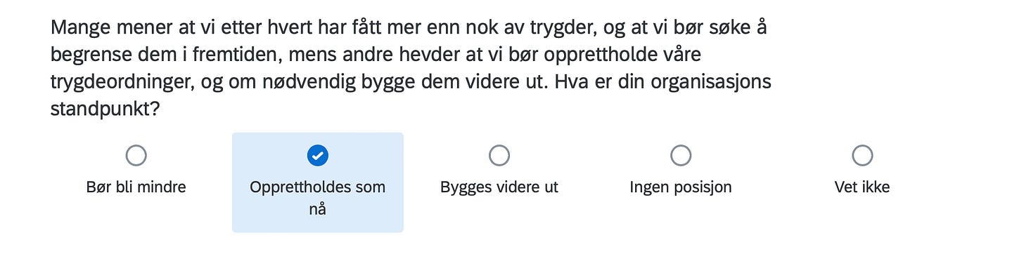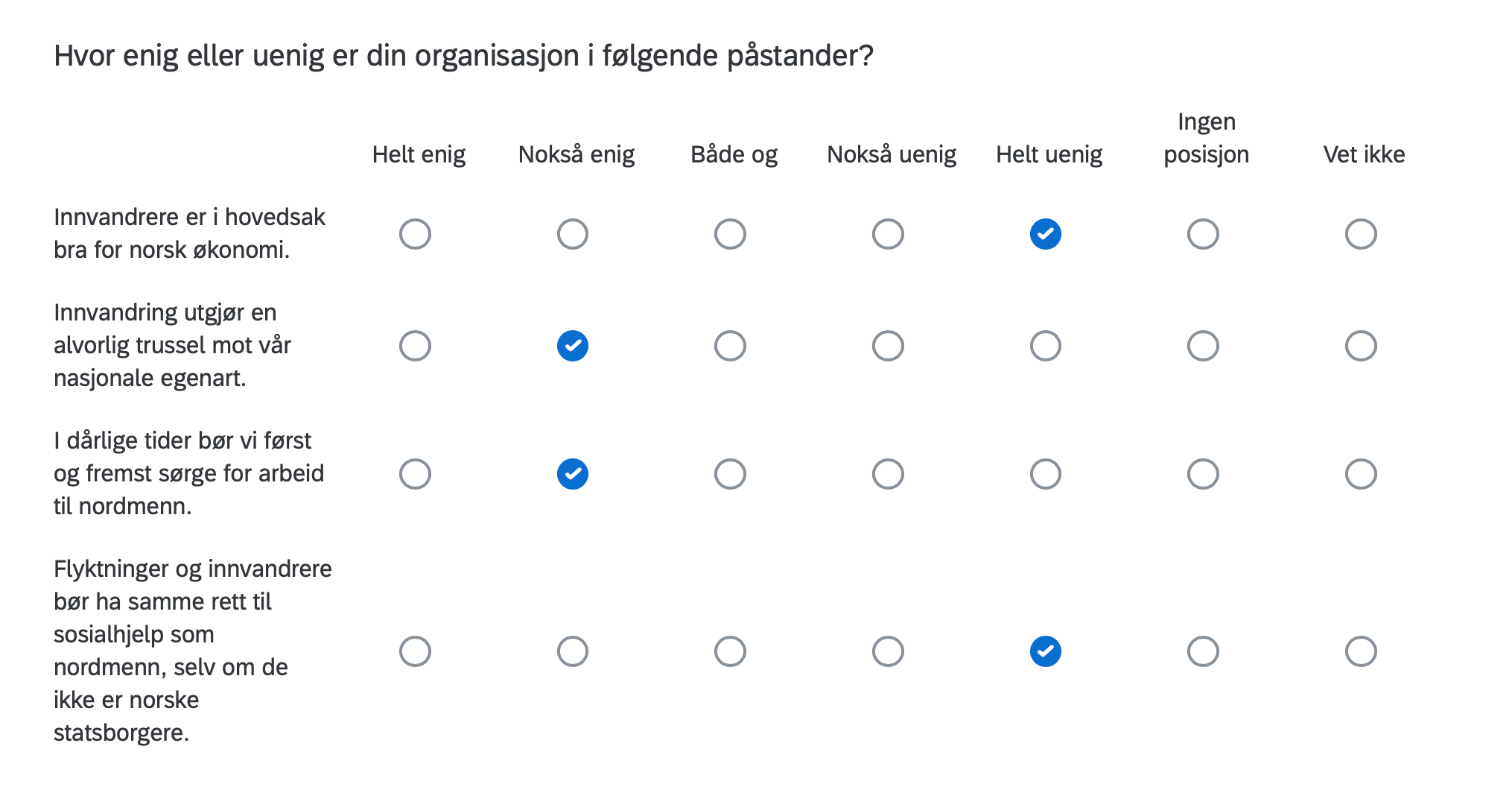 Below are the positions of FORN SIÐR in a Norwegian survey assessing the position of organizations in Norway with respect to current political issues, including controversial matters such as environment, resource extraction, immigration, NATO membership, education, gender equality and even abortion.