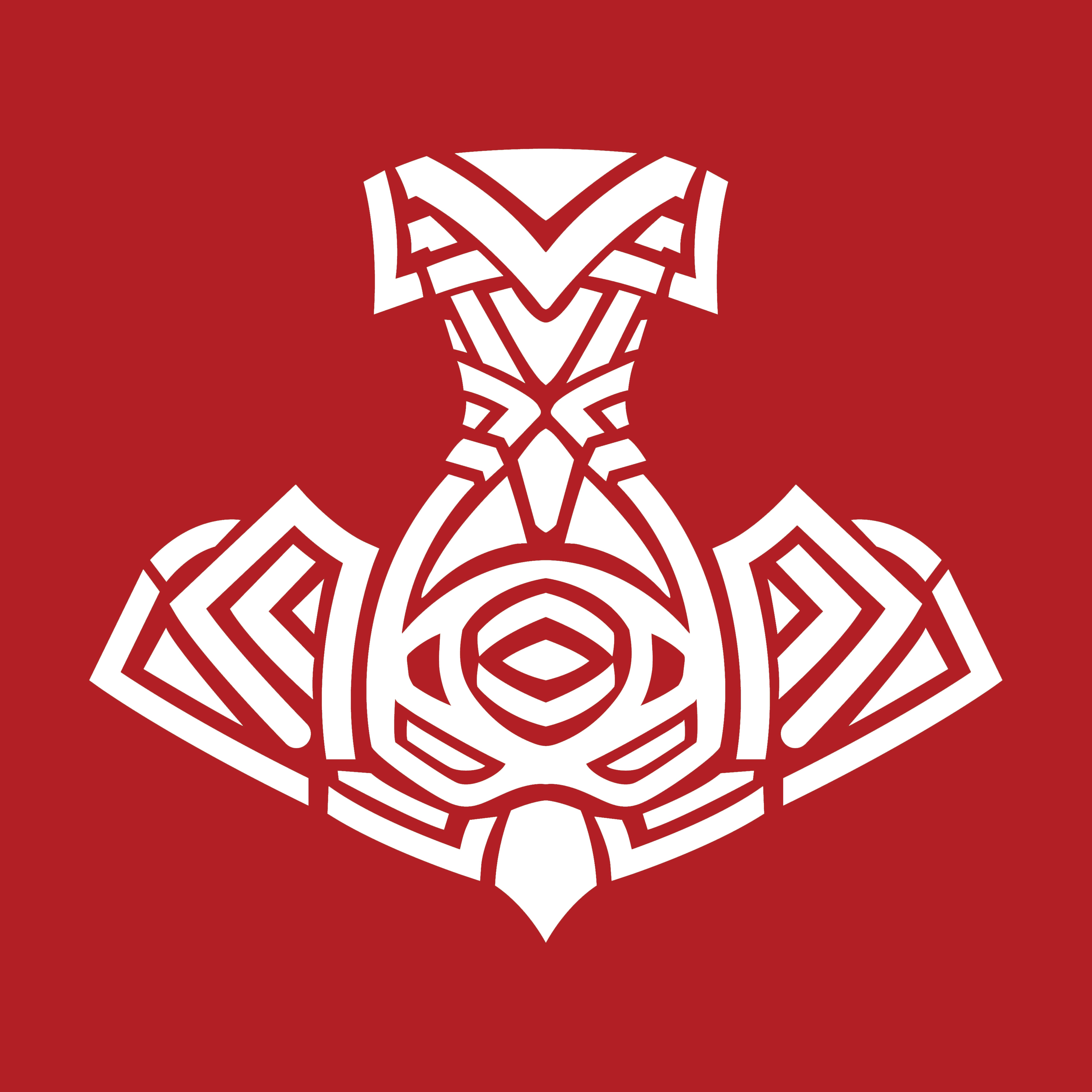 Old Norse with English translation (Diglot). A6 format (105 x 148 mm or 4.1 x 5.8 in). Full color. 182 pages made with paper/trees from Sweden. Handbound in Oslo with red linen hardcover embossed with Mjölnir symbol (also used for the rank of Hirðmaðr/Hersir with Sverðin). Full color book jacket depicting a Norse battle scene. Printed in Norway.