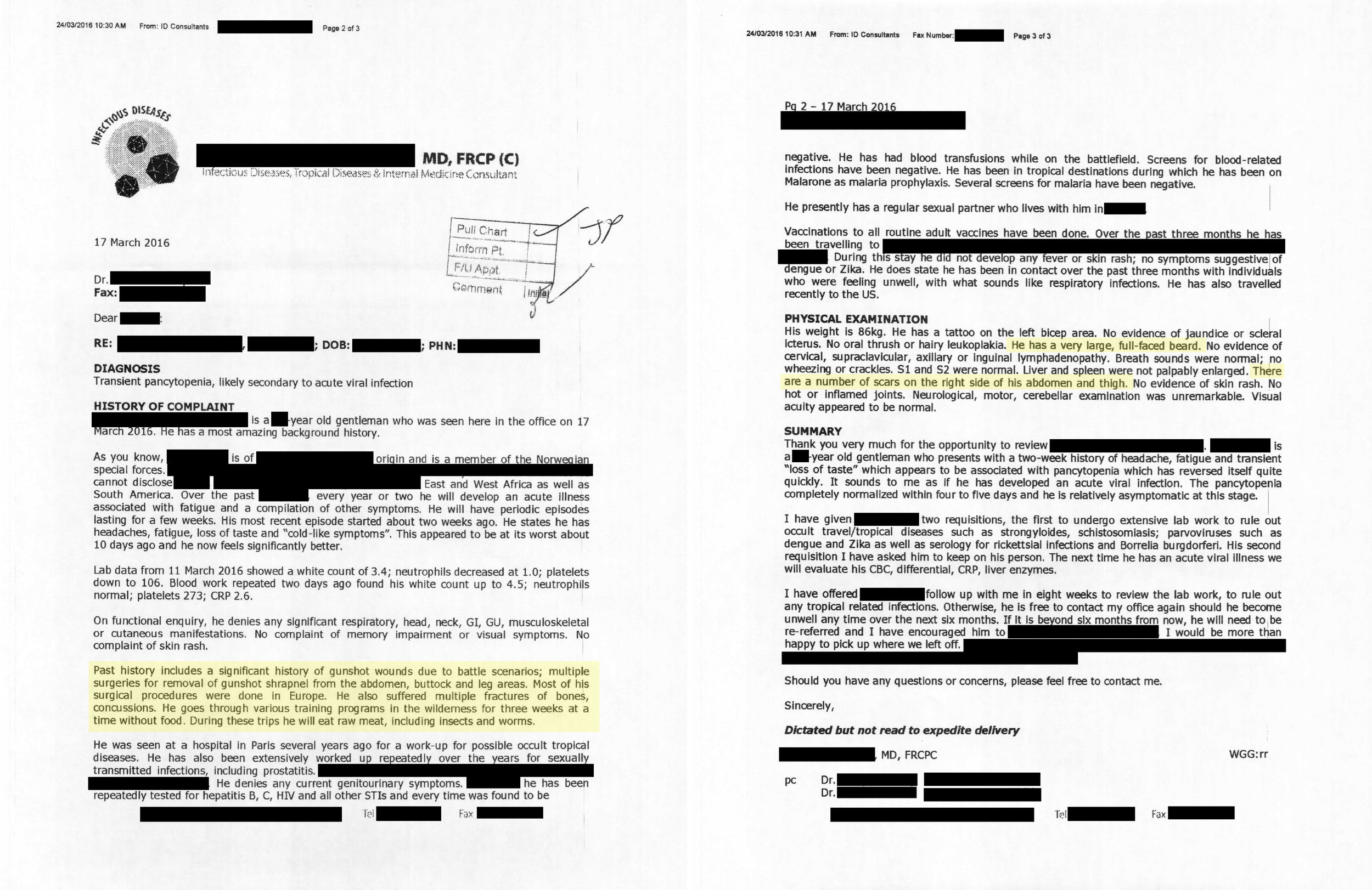 Even modern day warriors show signs of various trauma and injuries, despite exceptional military advances for body protection over the course of the last millennium, as demonstrated by a medical report for a Nordic special operation forces operator.